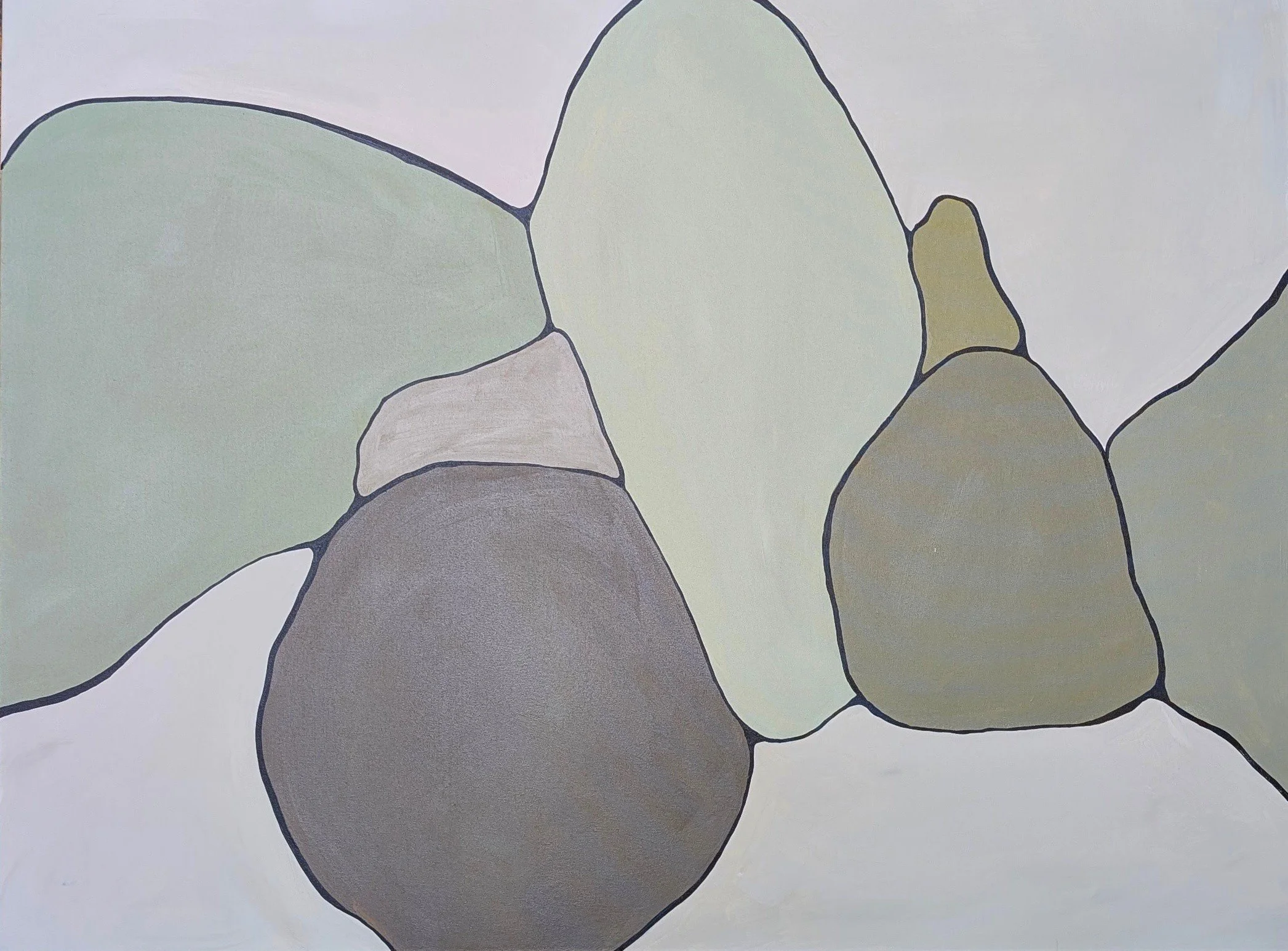 Texture plays a part, but it doesn’t take the lead. It sits just under the surface, noticeable only in close looking. The paint holds its shape without excess. Edges stay clean. The weight is in the form, not in the mark. The presence of the hand is there, but it doesn’t ask to be seen. These are not paintings of gesture. They don’t lean on energy or expression. They rest in the arrangement itself.